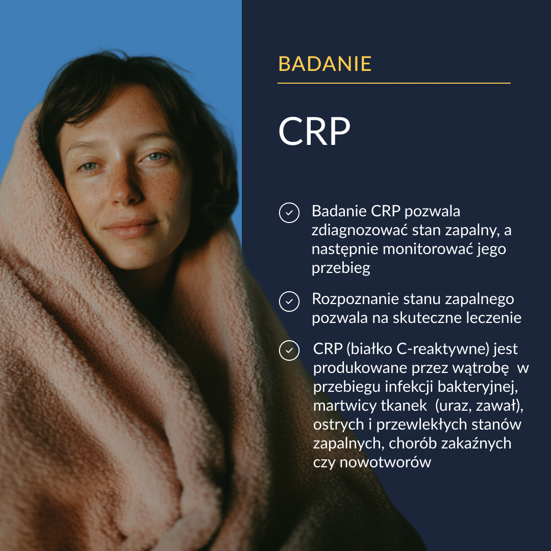 Białko CRP to najczęściej oznaczany marker ostrej fazy (co znaczy, że jego stężenie w osoczu zmienia się w odpowiedzi na reakcje zapalną w organizmie). Jest czułym wskaźnikiem rozwijającego się stanu zapalnego na tle infekcji lub martwicy.