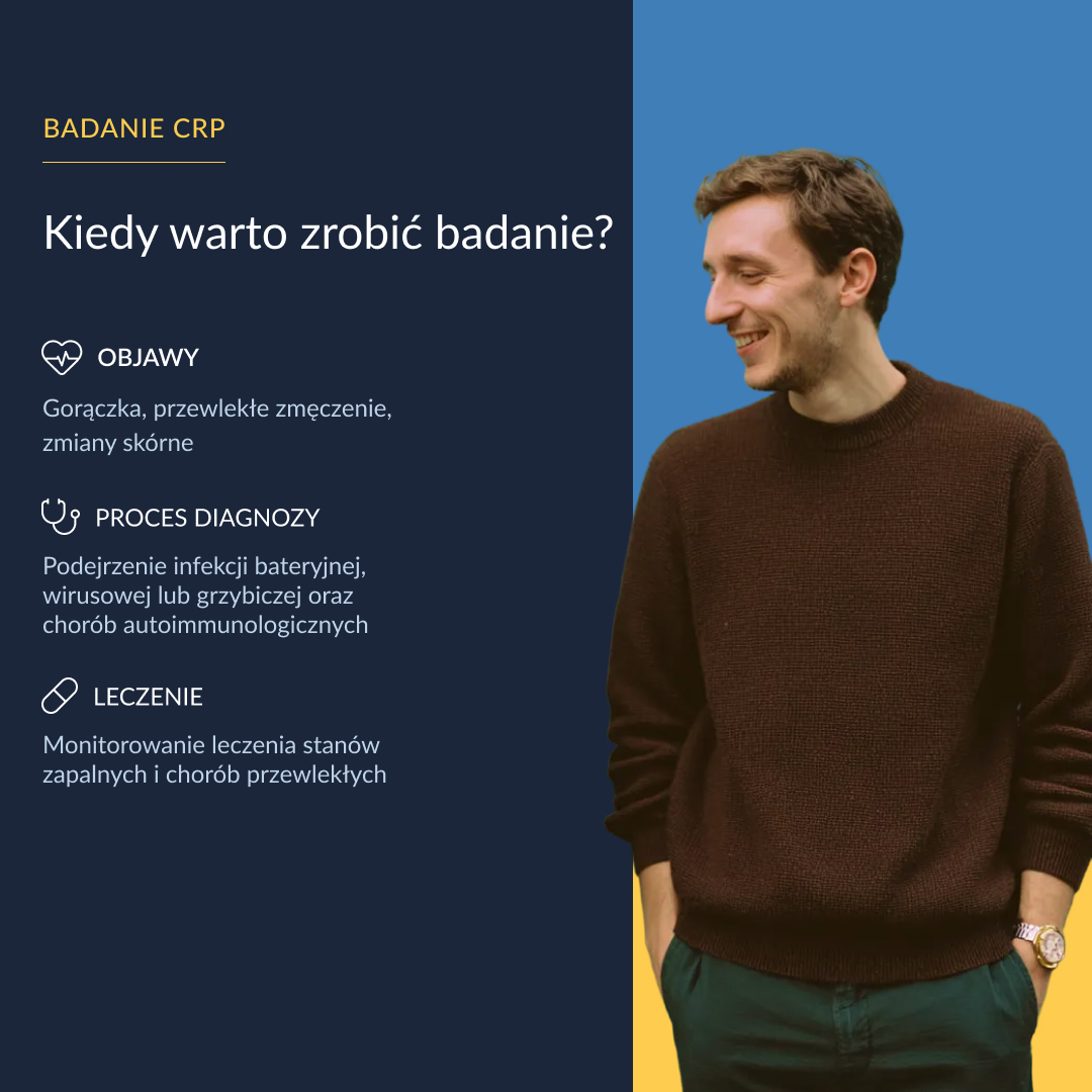 Wynik powinien niepokoić, gdy występuje wysokie stężenie CRP – wzrost CRP powyżej 10 mg/l powinien być uznawane za patognomoniczne dla stanu zapalnego, natomiast stężenia powyżej 100 mg/l są w 80-85% związane z infekcją bakteryjną.