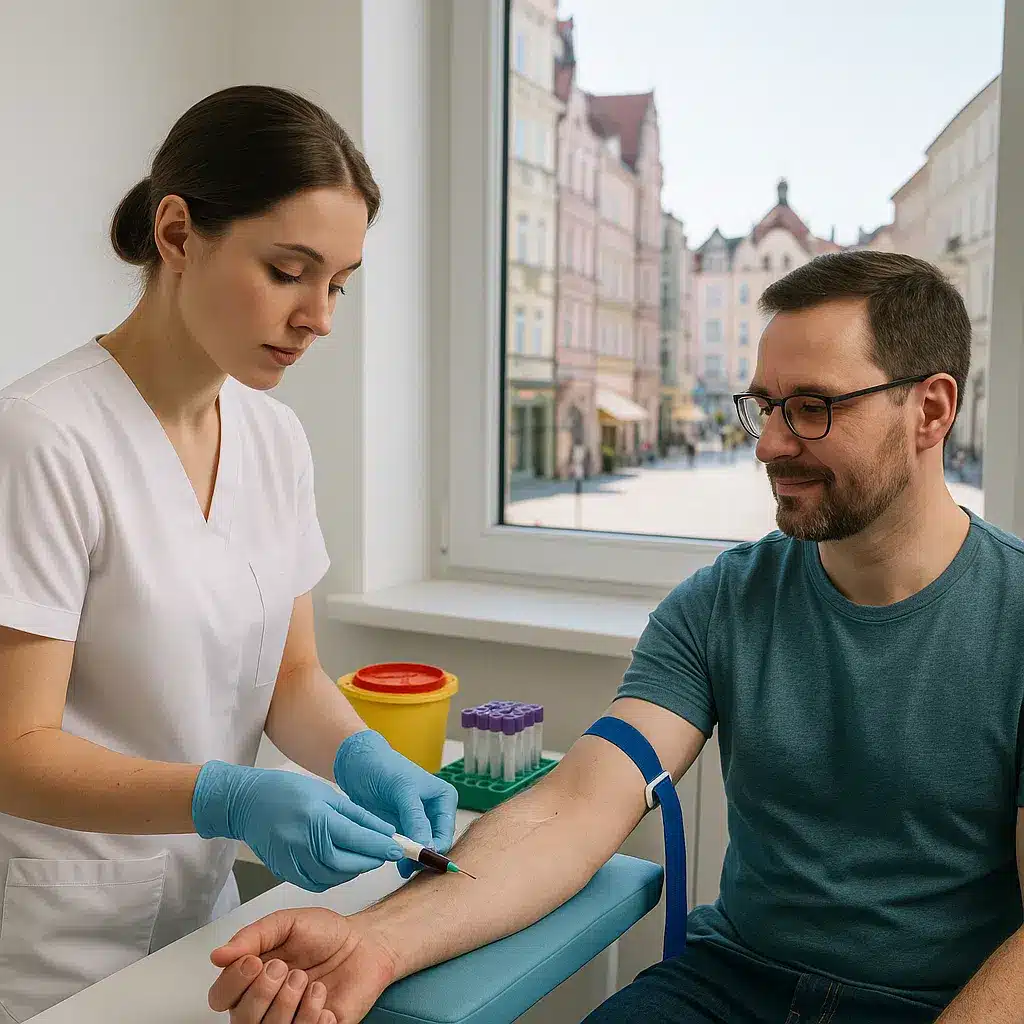Morfologia krwi obwodowej to jedno z najważniejszych badań diagnostycznych, które wykonasz w Zielonej Górze – zarówno profilaktycznie, jak i w celu wykrycia różnych schorzeń. Badanie polega na analizie liczby oraz wyglądu komórek krwi: czerwonych krwinek (erytrocytów), białych krwinek (leukocytów) i płytek krwi (trombocytów). Dzięki niemu można wcześnie wykryć m.in. niedokrwistość, stany zapalne, infekcje czy zaburzenia odporności.