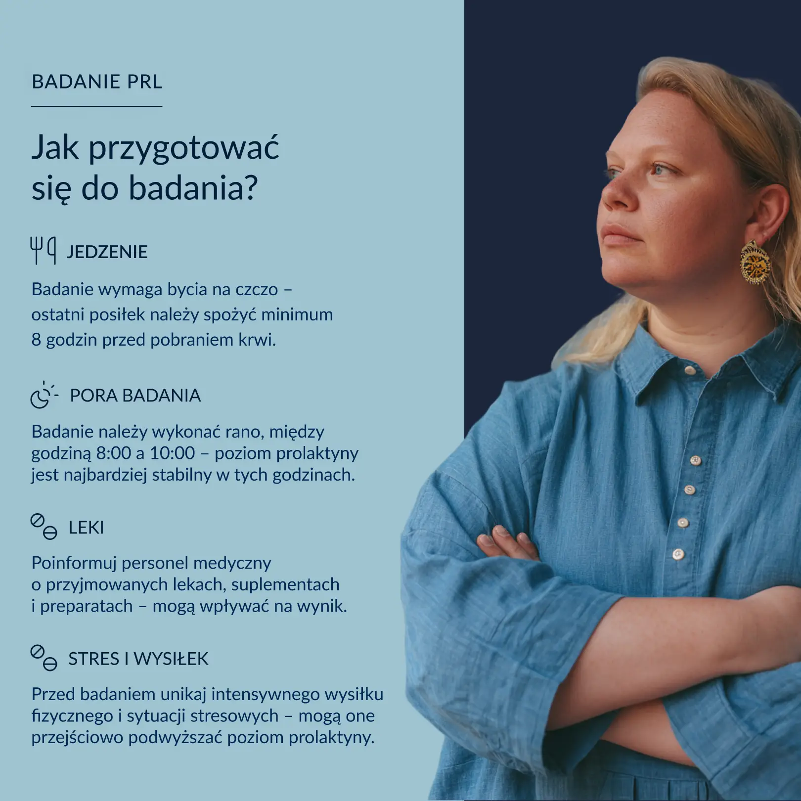 - Jeśli przyjmujesz leki, które mogą wpływać na poziom prolaktyny, skonsultuj się wcześniej z lekarzem. Niektóre z tych leków trzeba odstawić nawet na 3 dni przed badaniem – ale tylko za zgodą lekarza.